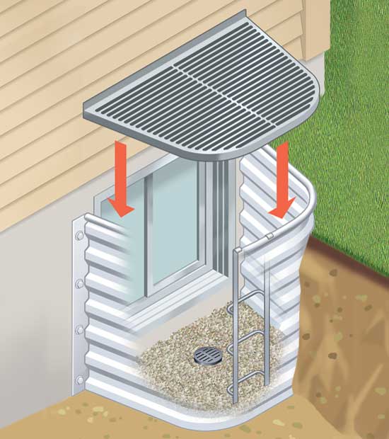 Existing windows under 35 inches wide or 45 inches tall cannot serve as emergency exits, requiring basement emergency exit window upgrades with corrugated metal window well liners for proper installation.