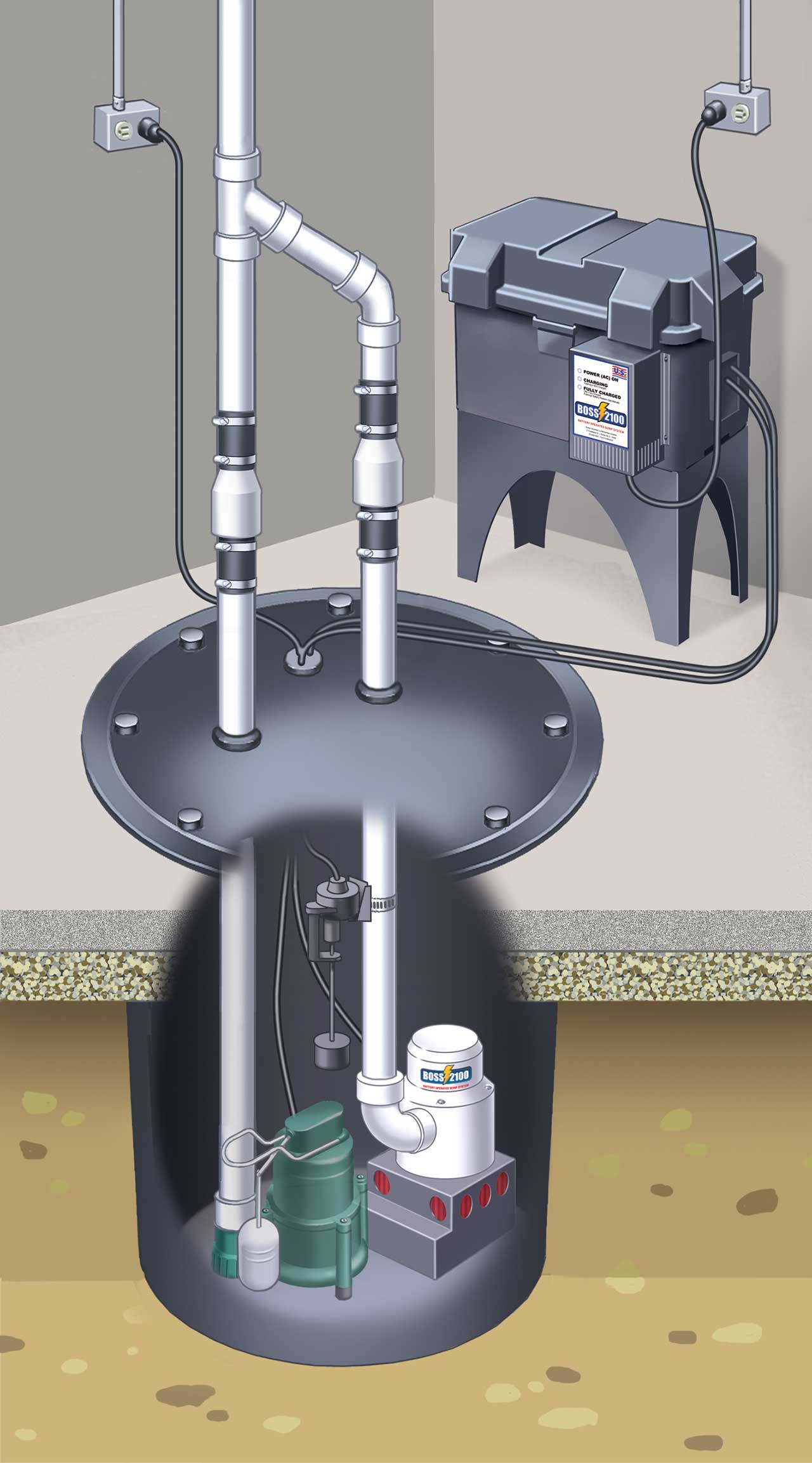 Our reliable battery backup sump pumps utilize the BOSS 2100 system that provides emergency water removal during power outages, featuring high-capacity batteries and efficient pump operation for extended protection periods.