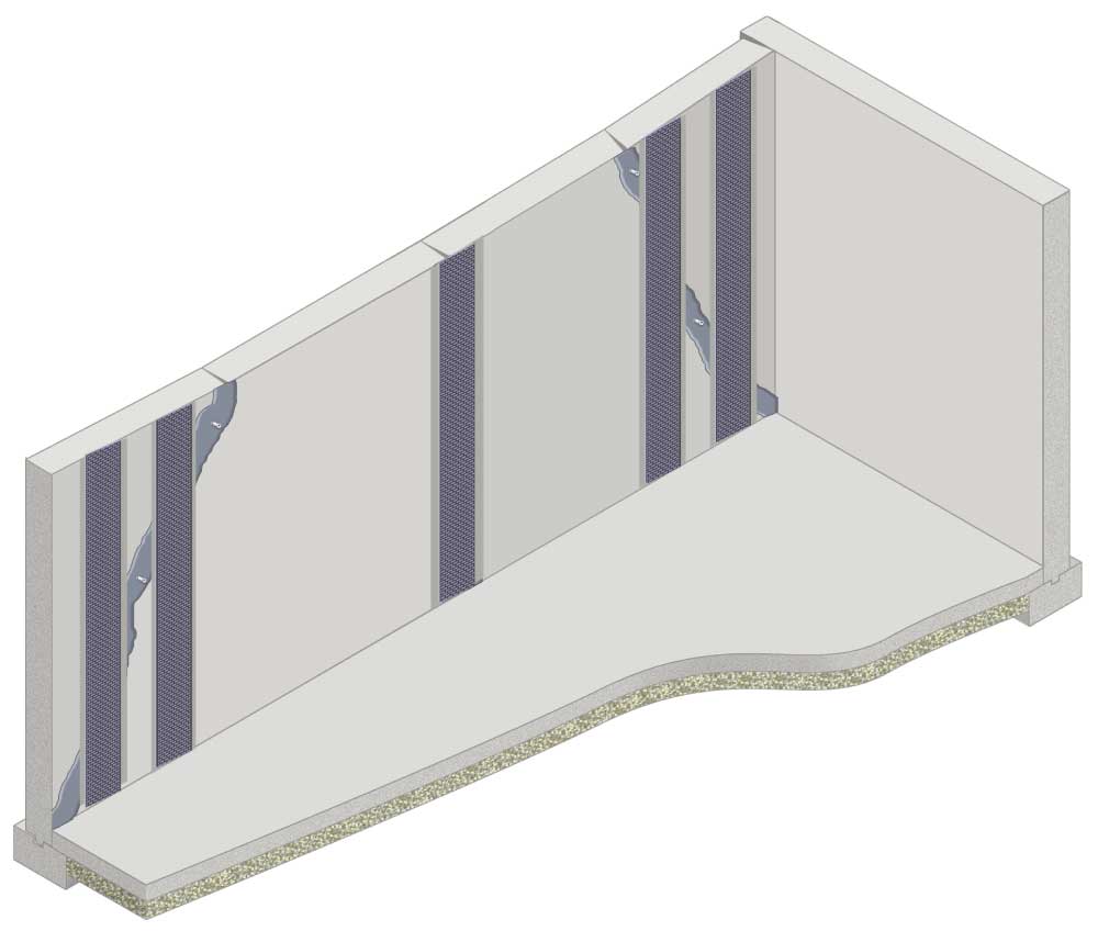 Our advanced carbon fiber strapping system provides superior tensile strength to stabilize bowed concrete foundation walls, preventing further inward movement while maintaining your basement’s usable space without excavation.